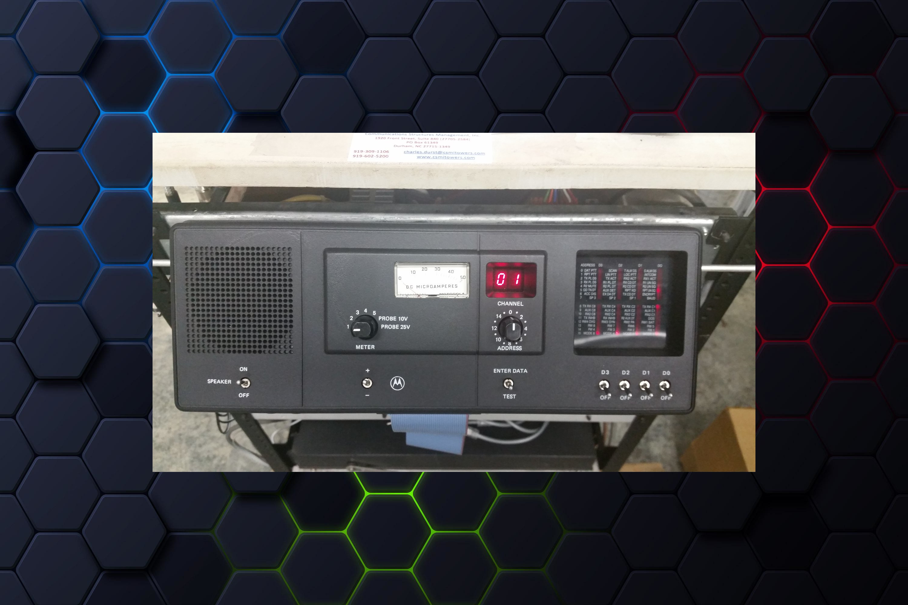 Picture of a tower setup for radio communications.